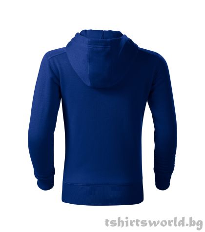 Детски топъл суитшърт с цип, качулка и две джобчета встрани тип кенгуру. Произведен под марката MALFINI от 65 % памук, 35 %полиестер (цвят тъмносив меланж 85% памук, 15% вискоза) на 300g/m², което го прави изключително топъл и желан от нашите дългогодишни клиенти. Уникален модел с качулка с подплата и връзки за стягане, а вътрешната част на бието на деколтето е обшита с контрастна лента. Моделът е подходящ за пролетния и есенно-зимният сезон, има ластични маншети на китките и ханша, запазващи топлината. Разполага с мека подплата и два отворени джоба в страни. Свободната кройка го прави подходящ както за спорт, така и за ежедневно носене с дънкови панталони. Може да се пере до 40 градуса.