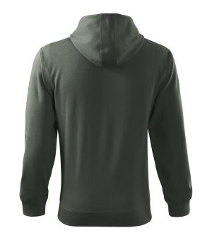 Мъжки топъл суитшърт с цип, качулка и две джобчета встрани тип кенгуру. Произведен под марката MALFINI от 65 % памук, 35 %полиестер (цвят тъмносив меланж 85% памук, 15% вискоза) на 300g/m², което го прави изключително топъл и желан от нашите дългогодишни клиенти. Уникален модел с качулка с подплата и връзки за стягане, а вътрешната част на бието на деколтето е обшита с контрастна лента. Моделът е подходящ за пролетния и есенно-зимният сезон, има ластични маншети на китките и ханша, запазващи топлината. Разполага с мека подплата и два отворени джоба в страни. Свободната кройка го прави подходящ както за спорт, така и за ежедневно носене с дънкови панталони. Може да се пере до 40 градуса.