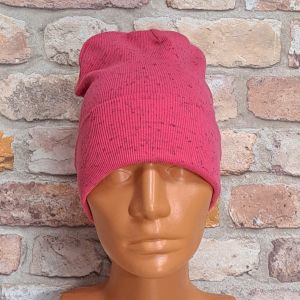 Уникална, функционална, универсална, стилна и модерна нова зимна шапка рипс с подгъв в цвят розов меланж.