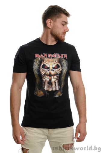 Mъжка тениска в черен цвят с дигитален печат на музикалната група Iron Maiden - Eddie Candle Finger с дигитален печат и на гърба. Тениската е изработена в България под марката PRINTEX от висококачествен 100% пениран памук на 170 гр./м², който запазва цялостта на материята и наситеността на цветовете дълго време. С удобна кройка, тениската е свободна и позволява максимален комфорт при носене. Професионално изработен висококачествен дигитален печат, устойчив на пране с години. Тениската може да се пере при температура до 40 градуса. Спокойно можем да гарантираме за качеството на изработката и ярките цветове на дизайна.