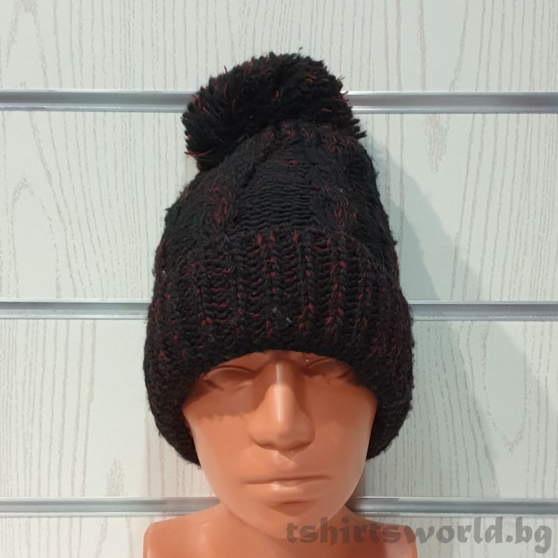 Зимна плетена шапка меланж с пух/помпон